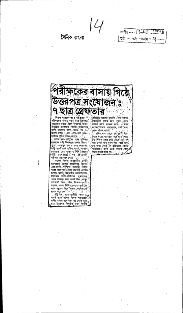 পরীক্ষাকের বাসায় গিয়ে উত্তর সংযোজনঃ ৭ ছাত্র প্রেফতার Published on Newspaper দৈনিক বাংলা Category Personal Opinion / Discussion / Commentary Download