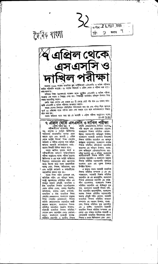 ৭ এপ্রিল থেকে এসএসসি ও দাখিল পরীক্ষা Published on Newspaper দৈনিক বাংলা Category Personal Opinion / Discussion / Commentary Download