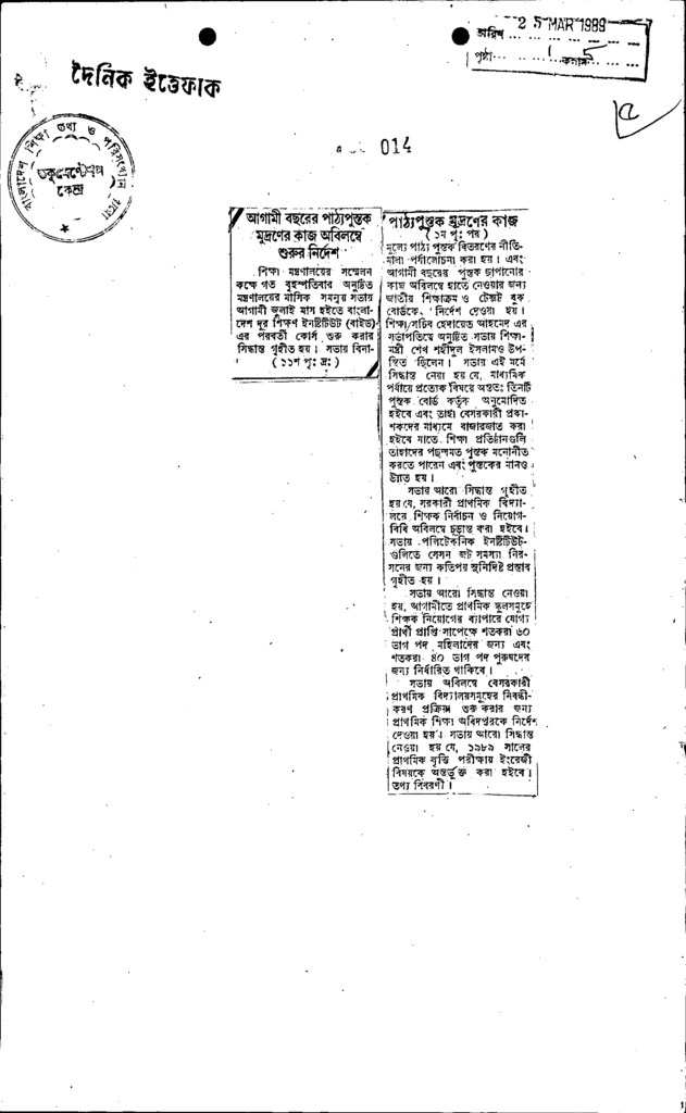 আগামী বছরের পাঠ্যপুস্তক মুদ্রণের অবিলম্বে শুরুর নির্দেশ Published on Newspaper দৈনিক ইত্তেফাক Category Educational Ministry / Departments Education Board NCTB Education Ministry / Division / Directorate Download