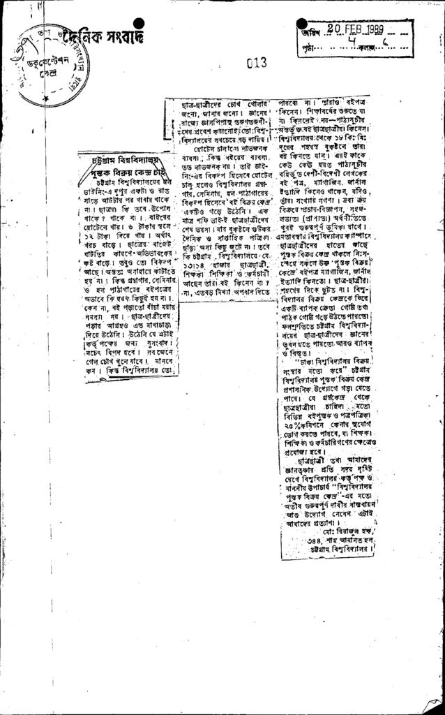 চট্রগ্রাম বিশ্ববিদ্যালয় পুস্তক বিক্রয় কেন্দ্র চাই Published on Newspaper দৈনিক সংবাদ Category Educational Ministry / Departments Education Board NCTB Education Ministry / Division / Directorate Download