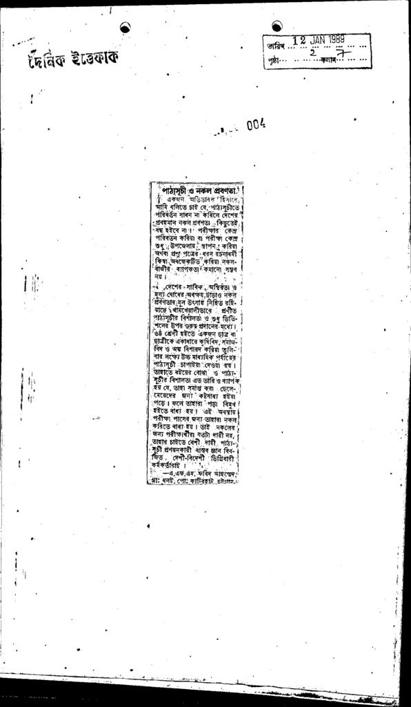 পাঠ্যসূচী ও নকল প্রবণতা Published on Newspaper দৈনিক ইত্তেফাক Category Educational Ministry / Departments Education Board NCTB Education Ministry / Division / Directorate Download