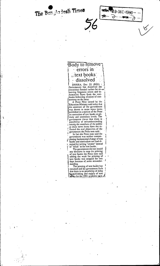 Body to remove errors in text books dissolved Published on Newspaper The Bangladesh Times Category Educational Ministry / Departments Education Board NCTB Education Ministry / Division / Directorate Download