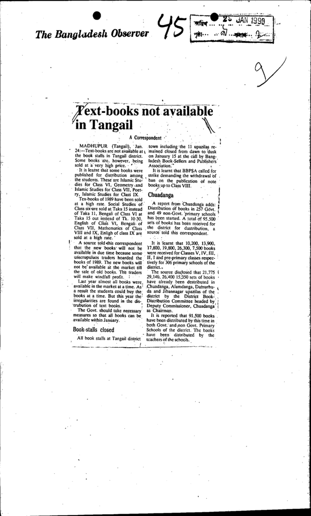 Text-books not available in tangail Published on Newspaper The Bangladesh Observer Category Educational Ministry / Departments Education Board NCTB Education Ministry / Division / Directorate Download