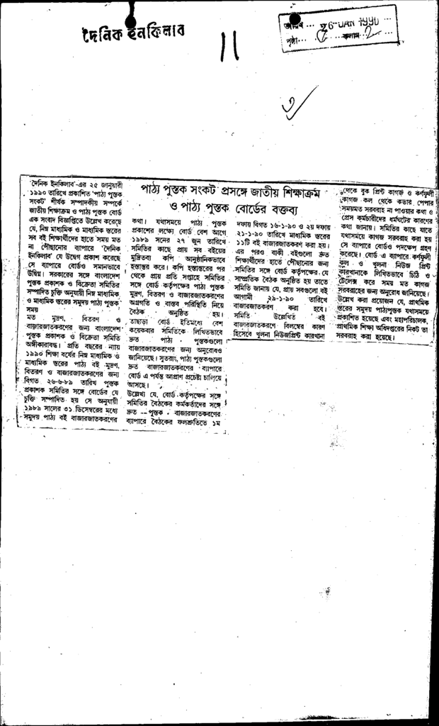 পাঠ্য পুস্তক সংকট প্রসঙ্গে জাতীয় শিক্ষাক্রম ও পাঠ্য পুস্তক বোর্ডের বক্তব্য Published on Newspaper দৈনিক ইনকিলাব Category Educational Ministry / Departments Education Board NCTB Education Ministry / Division / Directorate Download