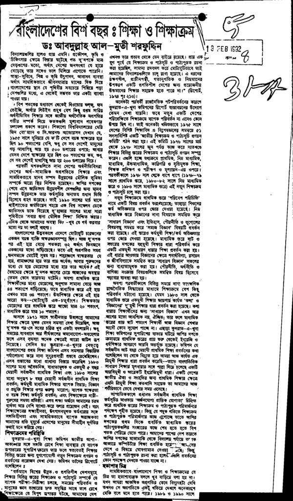 বাংলাদেশের বিশ বছরঃ শিক্ষা ও শিক্ষাক্রম ডঃ আবদুল্লাহ আল মুতী শরফুদ্দীন