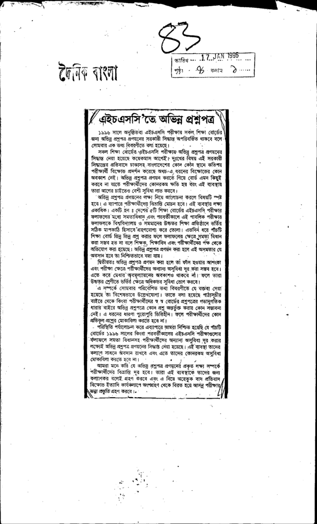 এইচএসসি’তে 4 বোর্ডে অভিন্ন প্রশ্নপত্র বাতিলের দাবিতে বিক্ষোভ Published on Newspaper দৈনিক আজকের কাগজ Category Educational Ministry / Departments Education Board NCTB Education Ministry / Division / Directorate Download