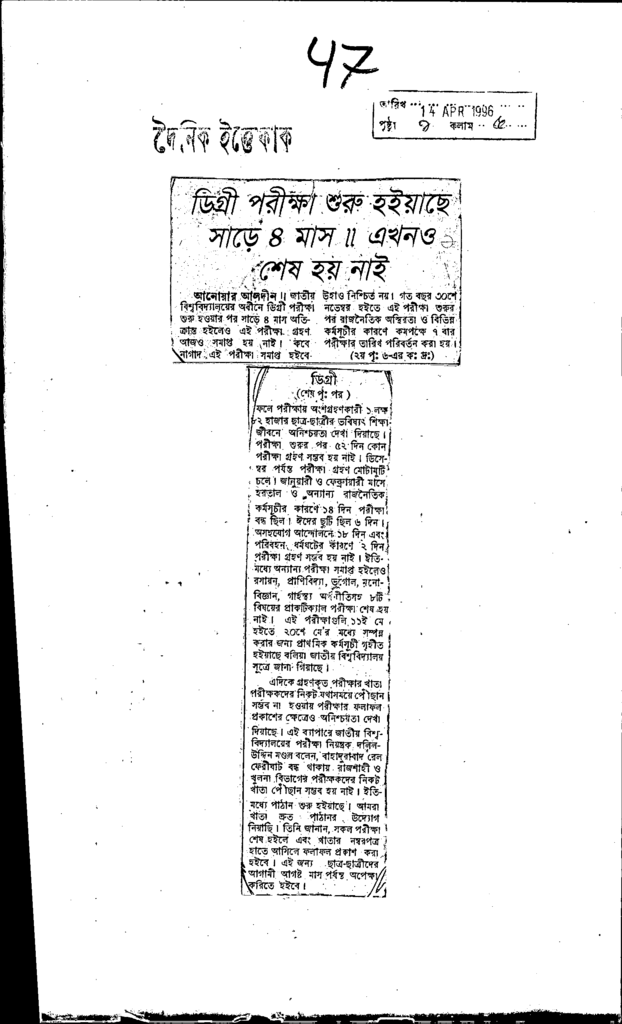 ডিগ্রী পরীক্ষার প্রশ্নপত্র ফাঁস? Published on Newspaper দৈনিক বাংলা Category Educational Ministry / Departments Education Board NCTB Education Ministry / Division / Directorate Download