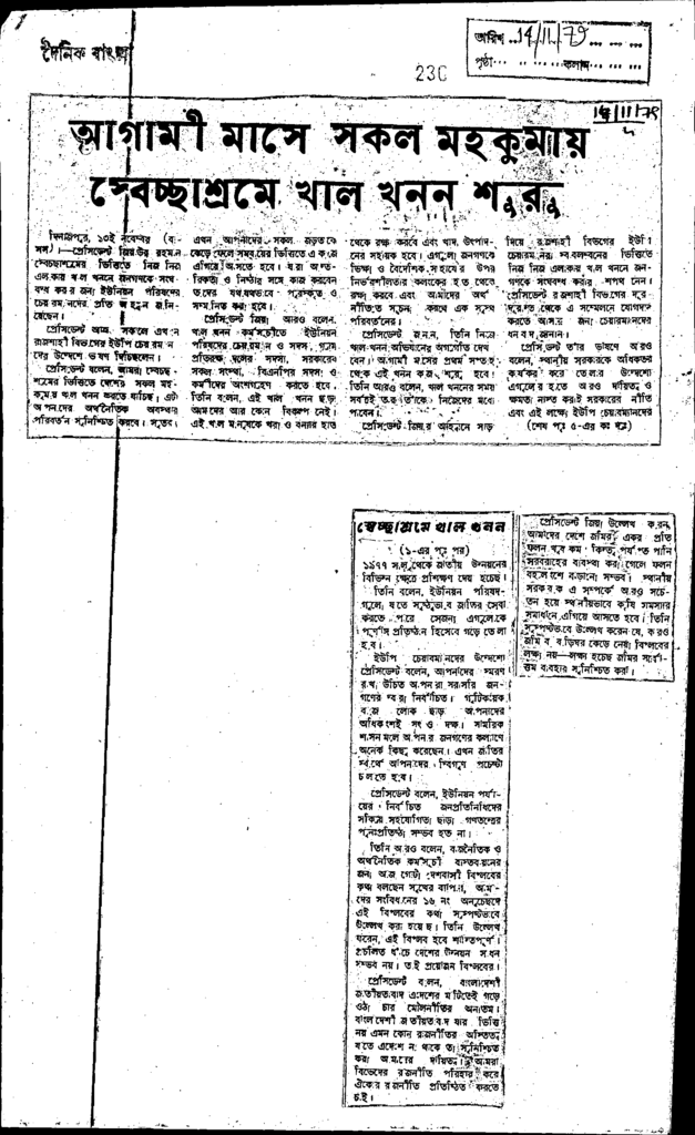 আগামী মাসে সকল মহকুমায় স্বেচ্ছাশ্রমে খাল খনন শুরু Published on Newspaper দৈনিক বাংলা Category General Education Download