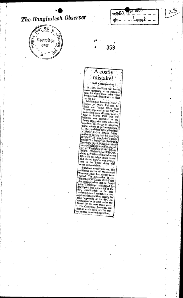 A costly mistake Published on Newspaper The Bangladesh Observer Category Public Examination Public Examination SSC Download