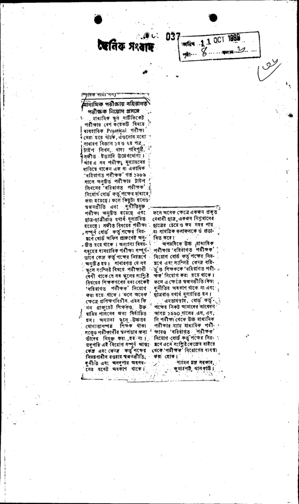 মাধ্যমিক পরীক্ষায় বহিরাগত পরীক্ষক নিয়োগ প্রসঙ্গে Published on Newspaper দৈনিক সংবাদ Category Public Examination Public Examination SSC Download