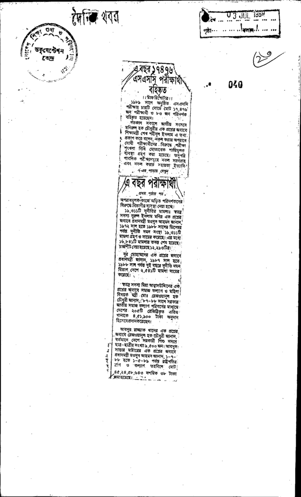 এ বছর 17476 এসএসসি পরীক্ষার্থী বহিষ্কৃত Published on Newspaper দৈনিক খবর Category Public Examination Public Examination SSC Download