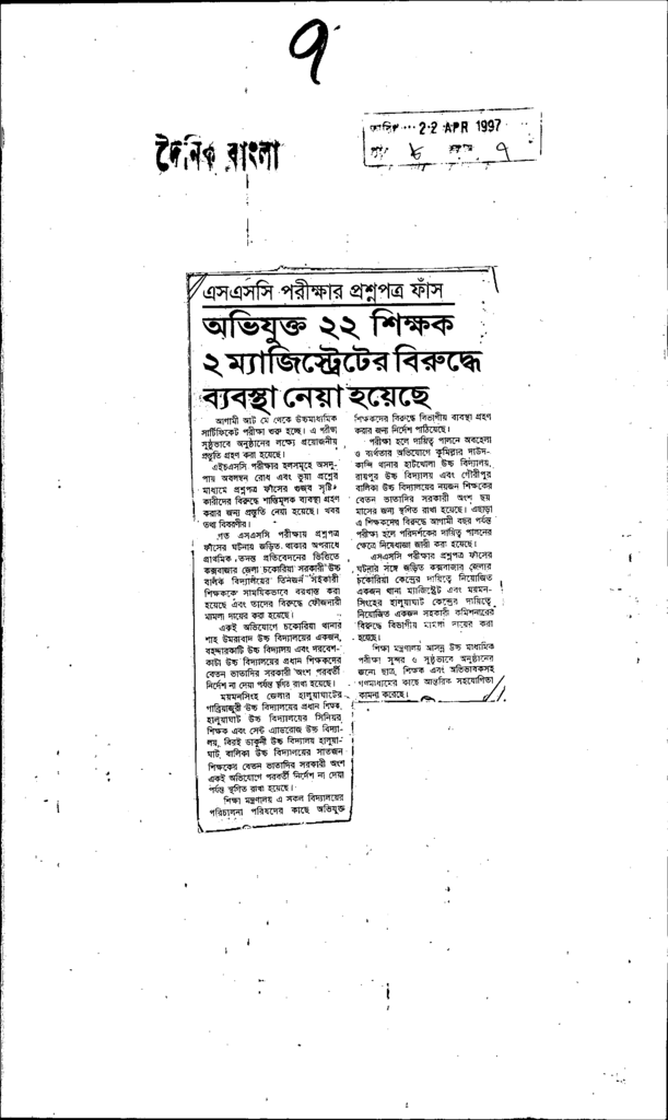 অভিযুক্ত 22 শিক্ষক 2 ম্যাজিস্ট্রেটের বিরুদ্ধে ব্যবস্থা নেয়া হয়েছে Published on Newspaper দৈনিক বাংলা Category Public Examination Public Examination SSC Download