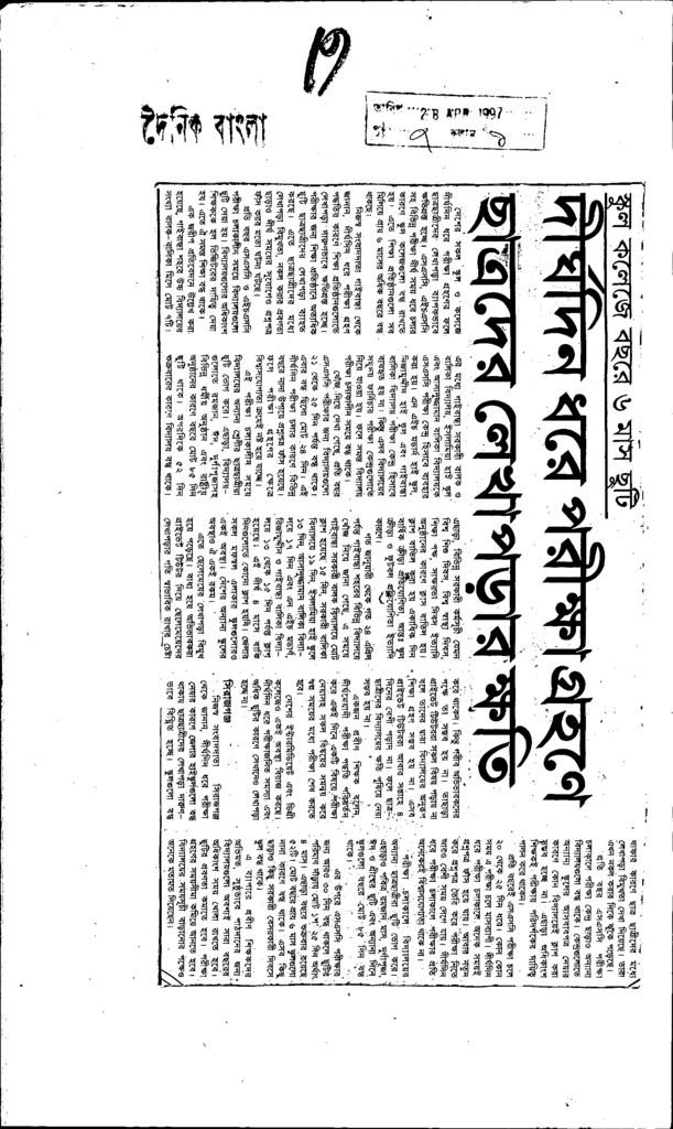 দীর্ঘদিন ধরে পরীক্ষা গ্রহণে ছাত্রদের লেখাপড়ার ক্ষতি Published on Newspaper দৈনিক বাংলা Category Public Examination Public Examination SSC Download