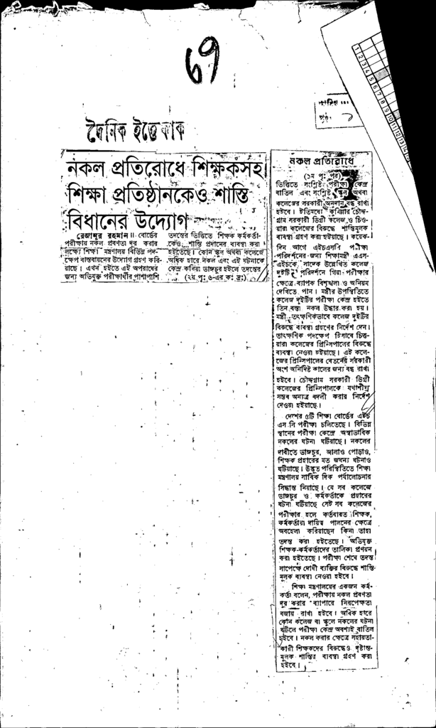নকল প্রতিরোধে শিক্ষকসহ শিক্ষা প্রতিষ্ঠানকেও শাস্তি বিধানের উদ্যোগ Published on Newspaper দৈনিক ইত্তেফাক Category Public Examination Public Examination SSC Download