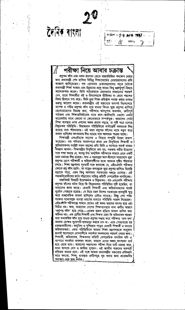 পরীক্ষা নিয়ে আবার চক্রান্ত Published on Newspaper দৈনিক বাংলা Category Public Examination Public Examination SSC Download
