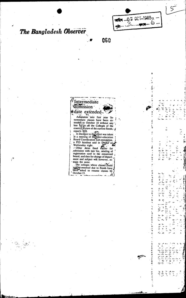 Intermediate admission date extended Published on Newspaper The Bangladesh Observer Category Public Examination Public Examination Higher Education Download