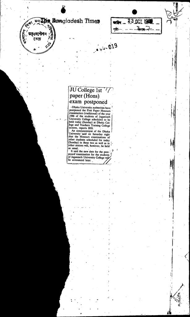 Ju college 1st paper (hons) exam postponed Published on Newspaper The Bangladesh Times Category Public Examination Public Examination Higher Education Download
