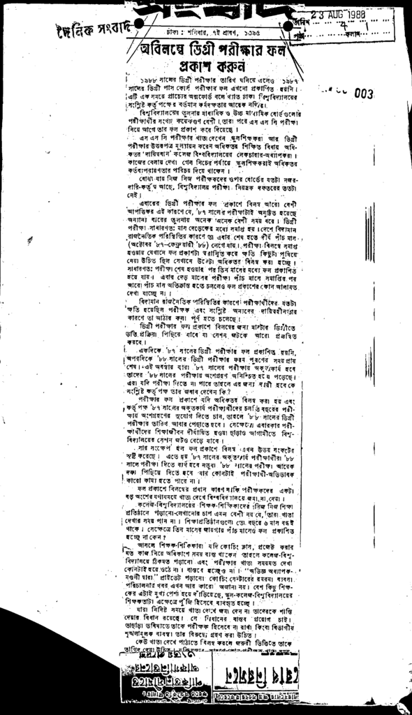 অবিলম্বে ডিগ্রী পরীক্ষার ফল প্রকাশ করুন Published on Newspaper দৈনিক সংবাদ Category Public Examination Public Examination Higher Education Download