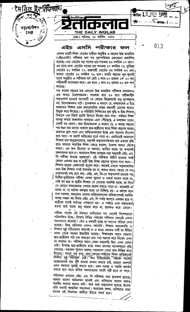 এইচ এসসি পরীক্ষার ফল Published on Newspaper দৈনিক ইনকিলাব Category Public Examination Public Examination Higher Education Download