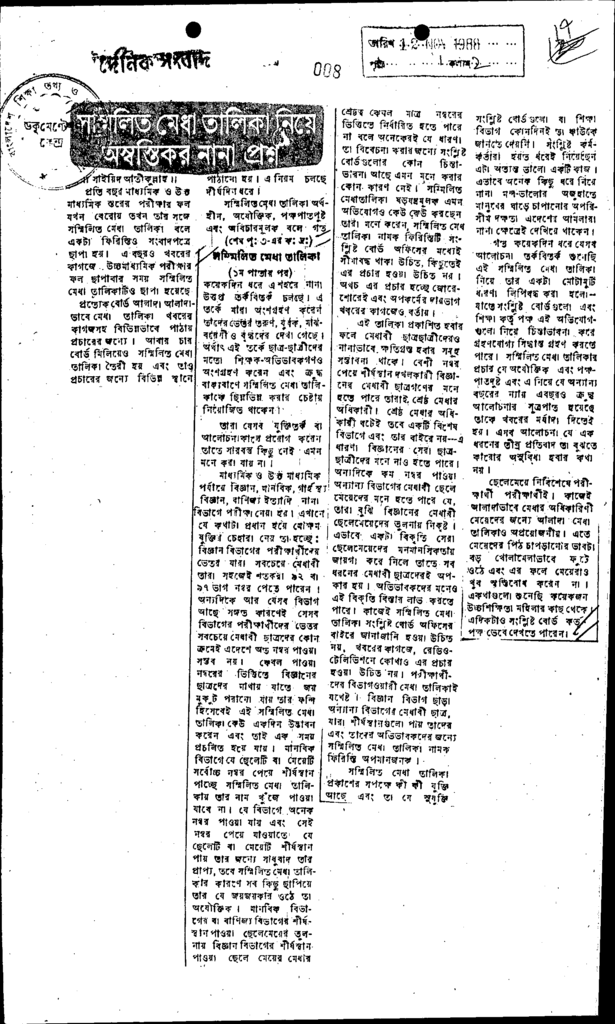সম্মিলিত মেধা তালিকা নিয়ে অস্বস্তিকর নানা প্রশ্ন Published on Newspaper দৈনিক সংবাদ Category Public Examination Public Examination Higher Education Download