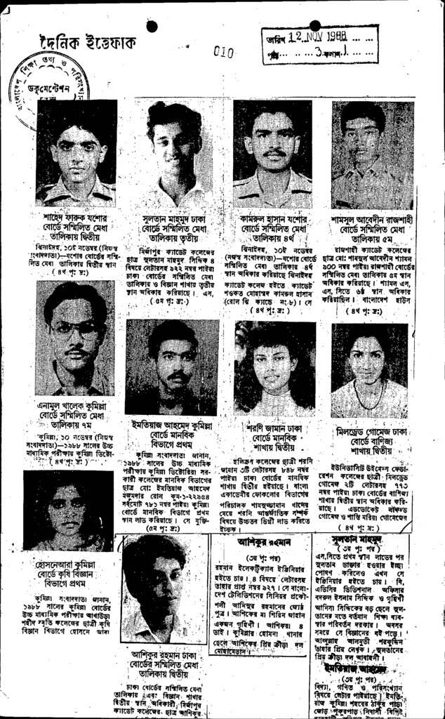 সুলতান মাহমুদ ঢাকা বোর্ডে সম্মিলিত মেধা তালিকায় তৃতীয় Published on Newspaper দৈনিক ইত্তেফাক Category Public Examination Public Examination Higher Education Download
