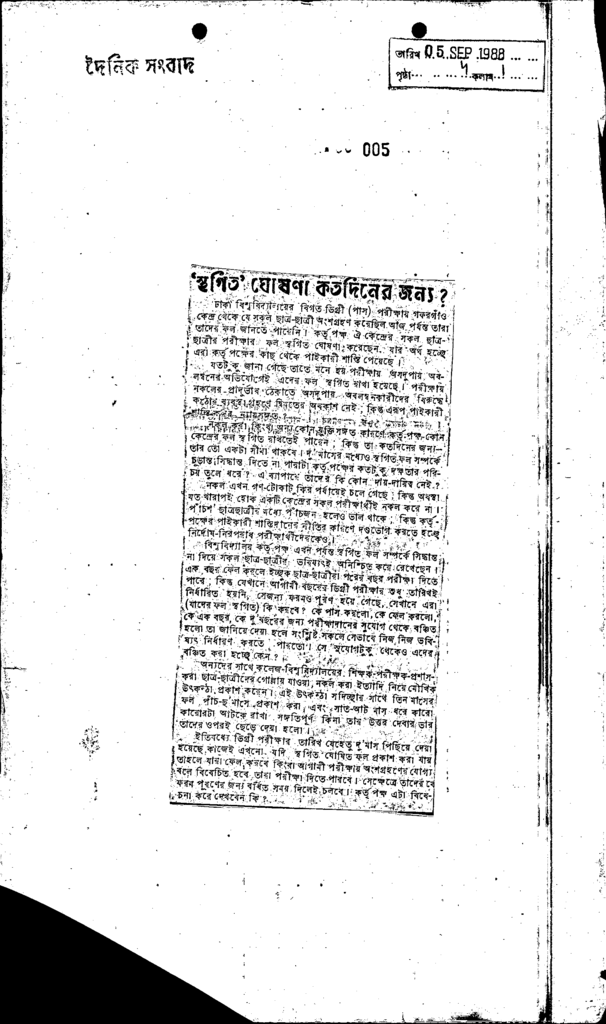 ‘স্থপিত’ ঘোষণা কতদিনের জন্য? Published on Newspaper দৈনিক সংবাদ Category Public Examination Public Examination Higher Education Download