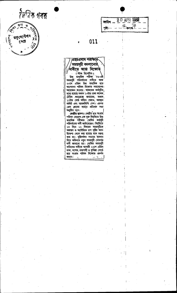এইচএসসি পরীক্ষার সময়সূচী বদলানোর দাবীতে আজ বিক্ষোভ Published on Newspaper দৈনিক খবর Category Public Examination Public Examination Higher Education Download