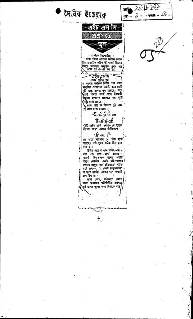 এইচ এস সি প্রশ্নপত্রে ভুল Published on Newspaper দৈনিক ইত্তেফাক Category Public Examination Public Examination Higher Education Download