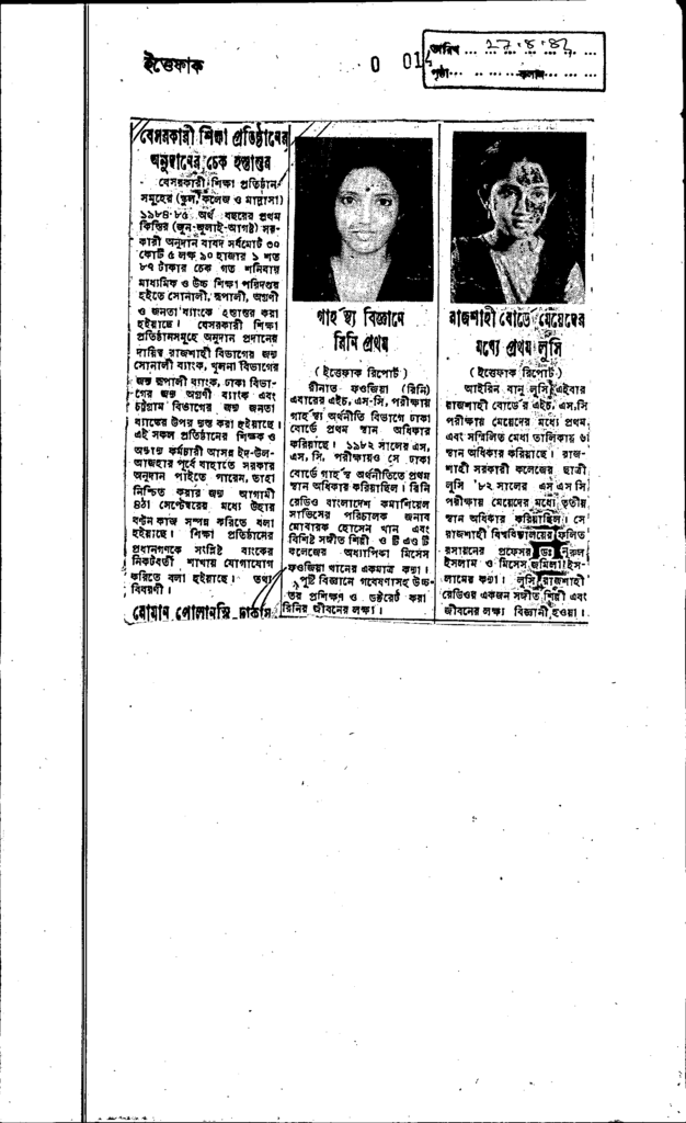 বেসরকারী শিক্ষা প্রতিষ্ঠানের অনুদানের চেক হস্তান্তর Published on Newspaper দৈনিক ইত্তেফাক Category Public Examination Public Examination Others Download