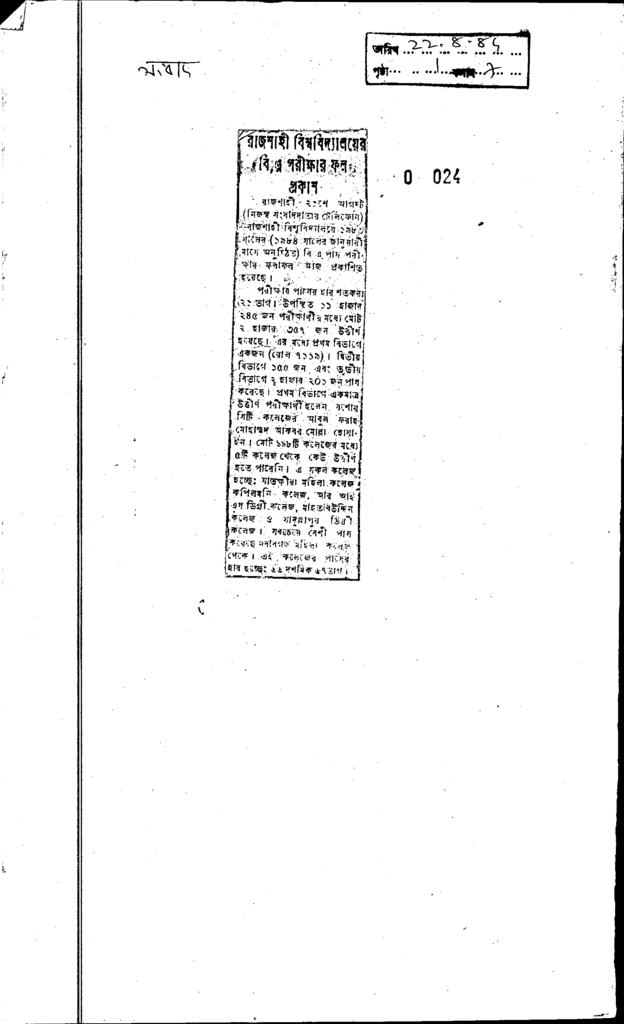 রাজশাহী বিশ্ববিদ্যালয়ের বি, এ পরীক্ষা ফল প্রকাশ Published on Newspaper দৈনিক সংবাদ Category Public Examination Public Examination Others Download