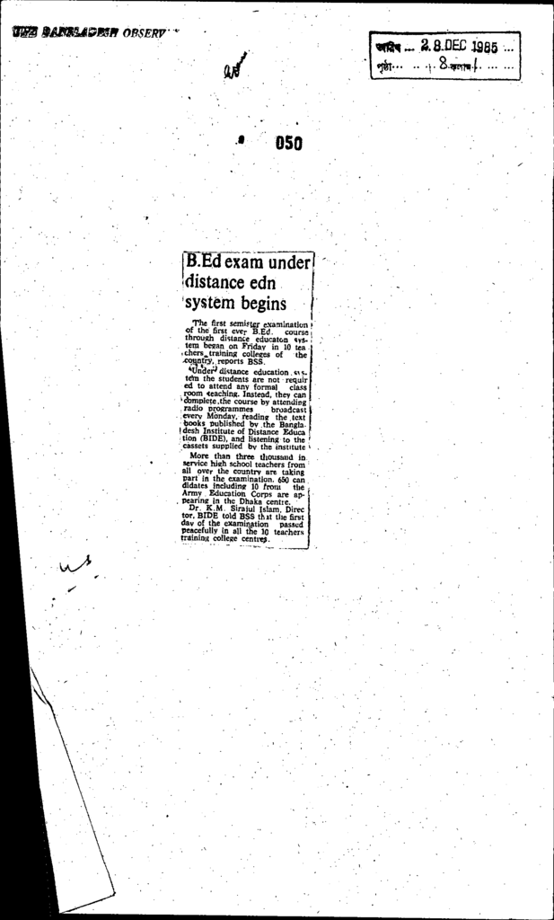 B.ed exam under distance edn system begins Published on Newspaper The Bangladesh Observer Category Public Examination Public Examination Others Download