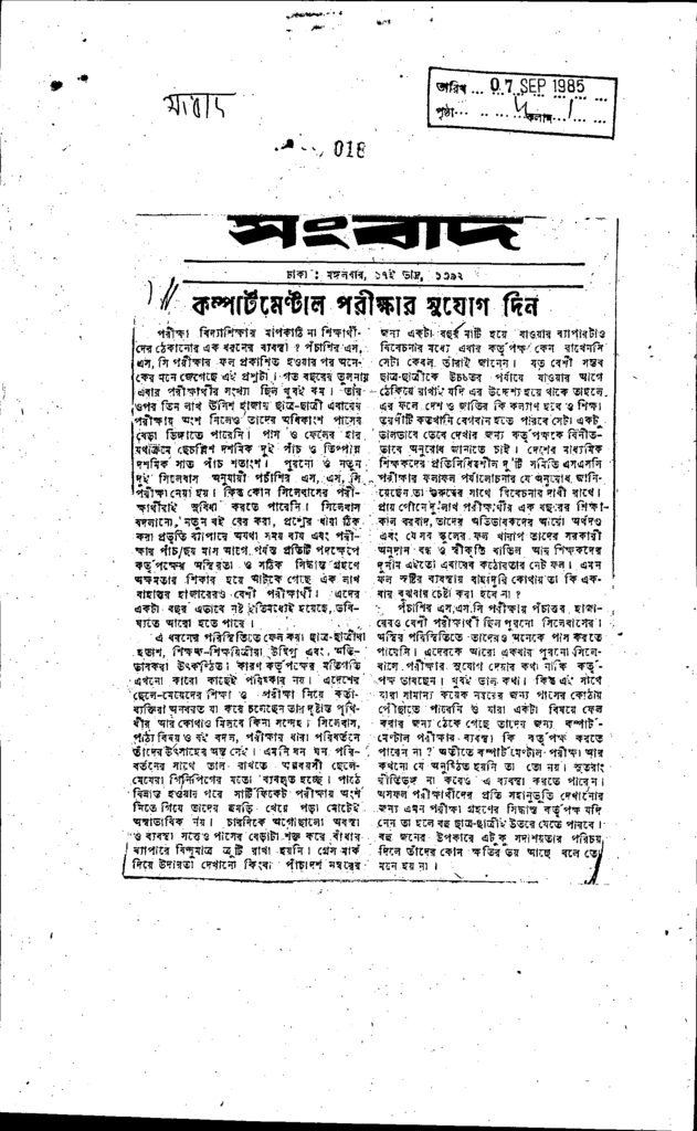 কম্পার্টমেন্টাল পরীক্ষার সুযোগ দিন Published on Newspaper দৈনিক সংবাদ Category Public Examination Public Examination Others Download