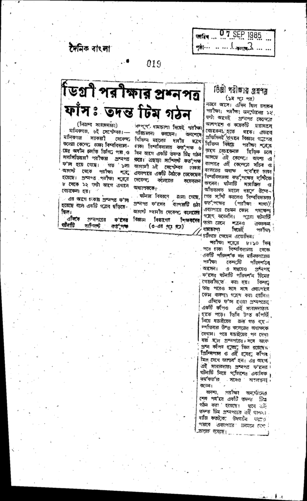 ডিগ্রী পরীক্ষার প্রশ্নপত্র ফাঁসঃ তদন্ত টিম গঠন Published on Newspaper দৈনিক বাংলা Category Public Examination Public Examination Others Download