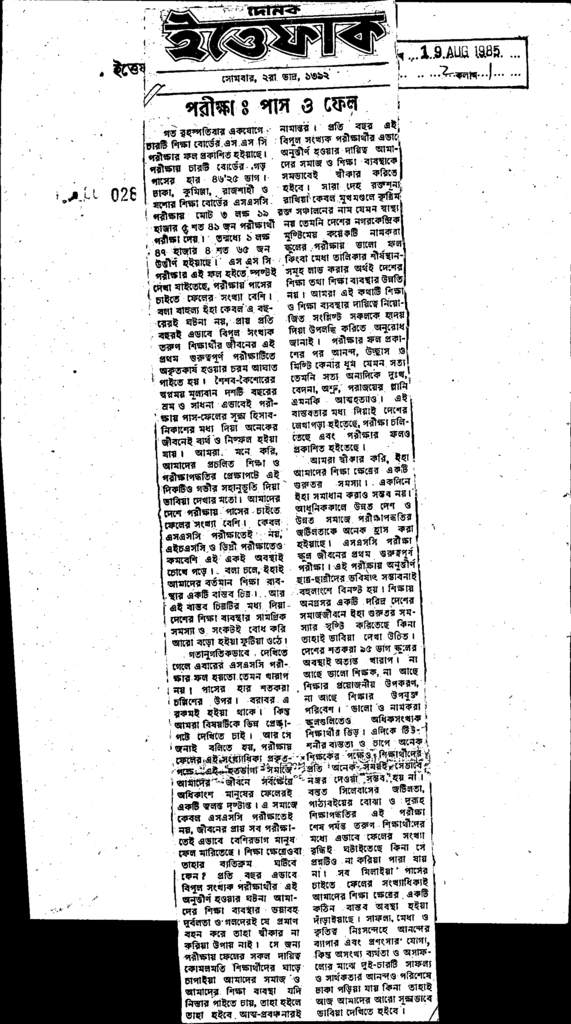 পরীক্ষাঃ পাস ও ফেল Published on Newspaper দৈনিক ইত্তেফাক Category Public Examination Public Examination Others Download