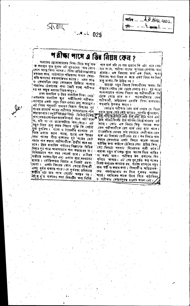পরীক্ষা পাসে এ ভিন্ন নিয়ম কেন? Published on Newspaper দৈনিক সংবাদ Category Public Examination Public Examination Others Download