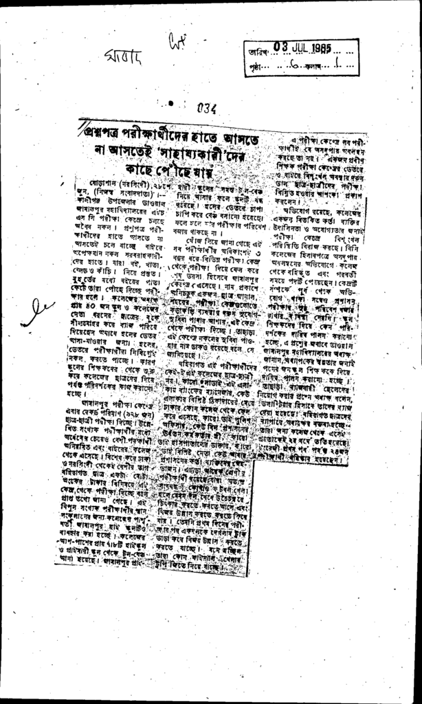 প্রশ্নপত্র পরীক্ষার্থীদের হাতে আসতে না আসতেই সাহায্যকারীদের কাছে পৌঁছে যায় Published on Newspaper দৈনিক সংবাদ Category Public Examination Public Examination Others Download