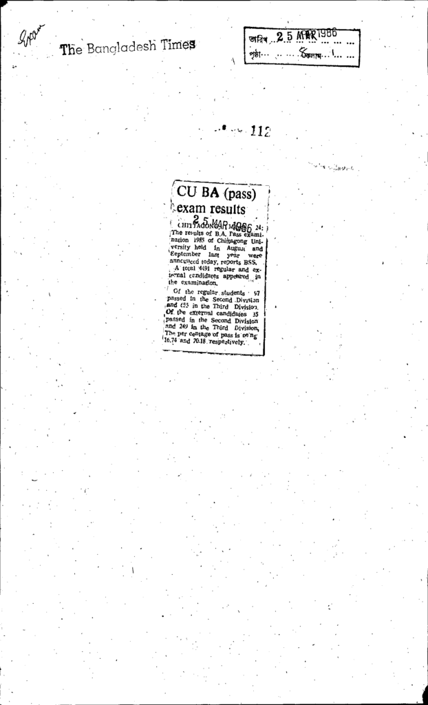 Cu ba (pass) exam result Published on Newspaper The Bangladesh Times Category Public Examination Public Examination Others Download