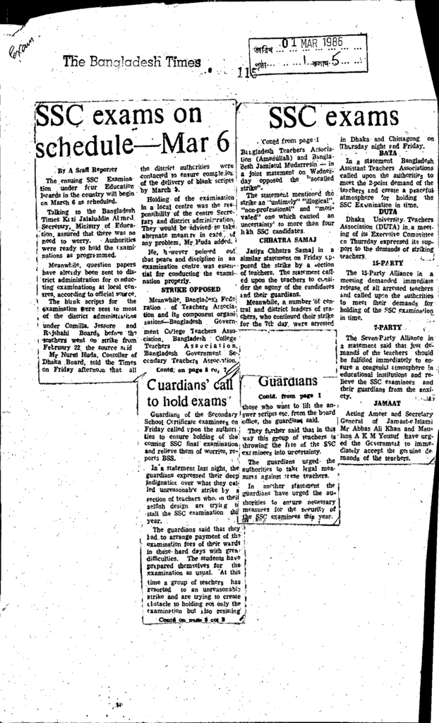 Ssc exams Published on Newspaper The Bangladesh Times Category Public Examination Public Examination Others Download