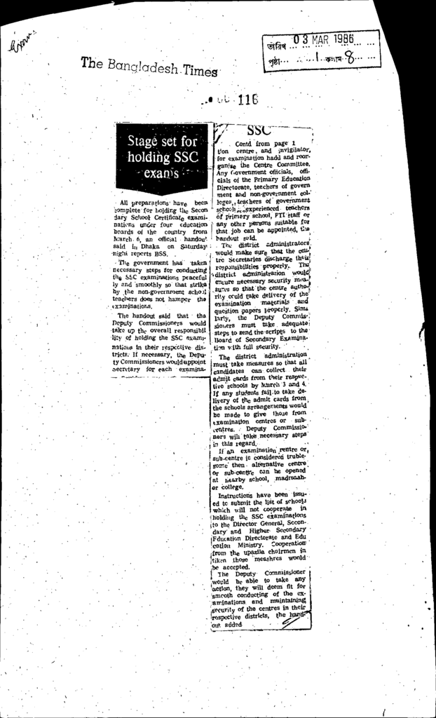 Stage set for holding ssc exams Published on Newspaper The Bangladesh Times Category Public Examination Public Examination Others Download