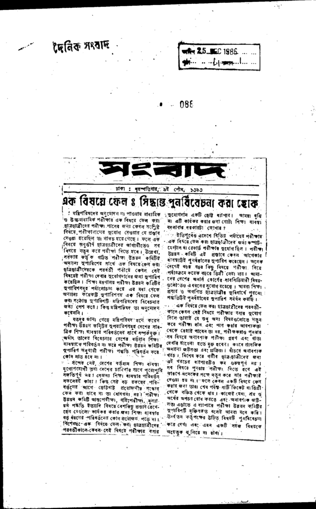 এক বিষয়ে ফেলঃ সিদ্ধান্ত পুনর্বিবেচনা করা হোক Published on Newspaper দৈনিক সংবাদ Category Public Examination Public Examination Others Download