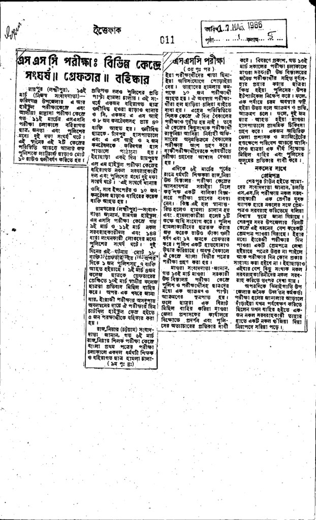 এস এস সি পরীক্ষাঃ বিভিন্ন কেন্দ্রে সংঘর্ষ।। গ্রেফতার ।। বহিষ্কার Published on Newspaper দৈনিক ইত্তেফাক Category Public Examination Public Examination Others Download