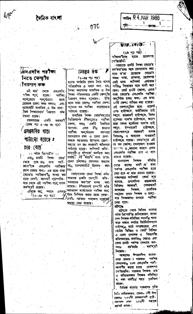 এস এস সি পরীক্ষা নিতে কেন্দ্রীয় নিয়ন্ত্রণ কক্ষ Published on Newspaper দৈনিক বাংলা Category Public Examination Public Examination Others Download