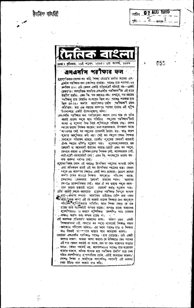 এস এস সি পরীক্ষার ফল Published on Newspaper দৈনিক বাংলা Category Public Examination Public Examination Others Download