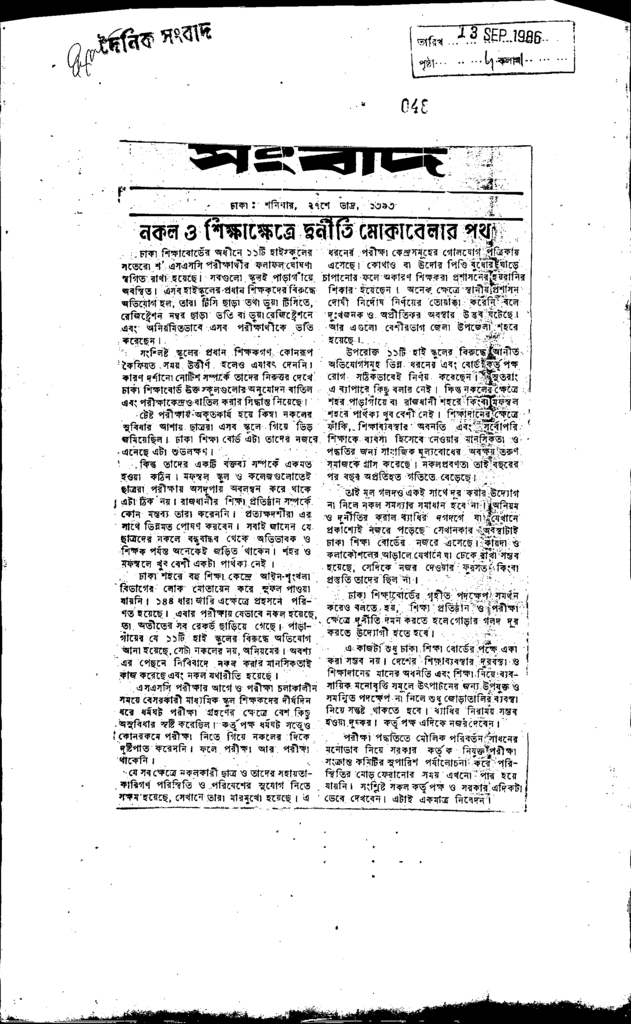 নকল ও শিক্ষাক্ষেত্রে দুর্নীতি মোকাবেলার পথ Published on Newspaper দৈনিক সংবাদ Category Public Examination Public Examination Others Download