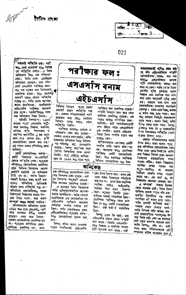 পরীক্ষার ফলঃ এসএসসি বনাম এইচ এস সি Published on Newspaper দৈনিক বাংলা Category Public Examination Public Examination Others Download