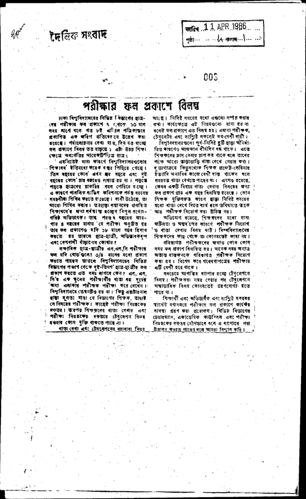 পরীক্ষার ফল প্রকাশে বিলম্ব Published on Newspaper দৈনিক সংবাদ Category Public Examination Public Examination Others Download