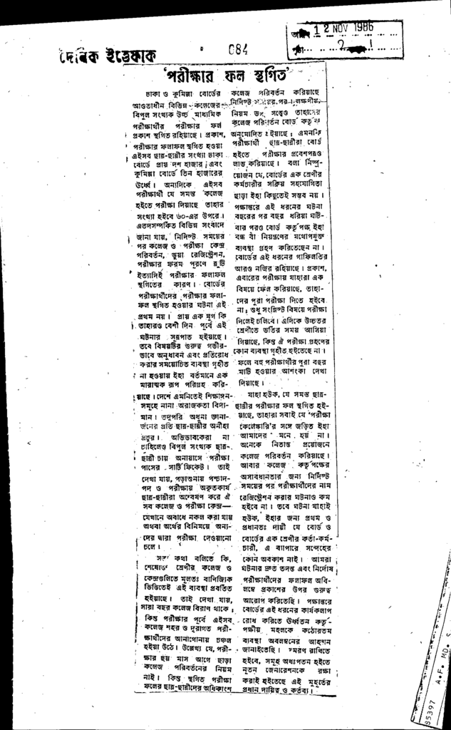 পরীক্ষার ফল স্থগিত Published on Newspaper দৈনিক ইত্তেফাক Category Public Examination Public Examination Others Download