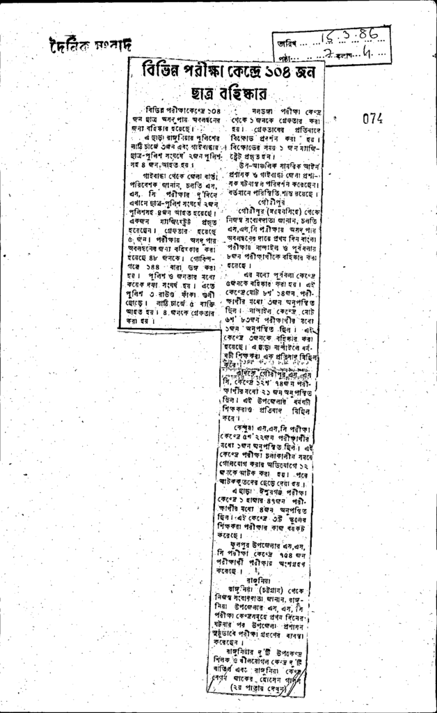 বিভিন্ন পরীক্ষা কেন্দ্রে ১০৪ জন ছাত্র বহিষ্কার Published on Newspaper দৈনিক সংবাদ Category Public Examination Public Examination Others Download