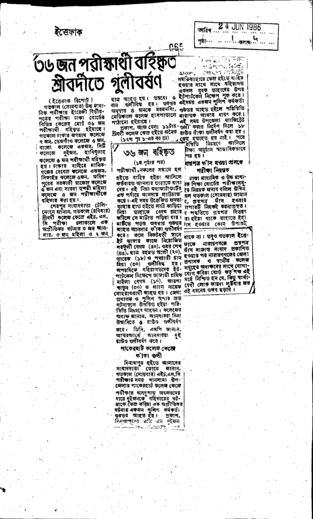 ৩৬ জন পরীক্ষার্থী বহিষ্কৃত শ্রীবর্দীতে গুলীবর্ষণ Published on Newspaper দৈনিক ইত্তেফাক Category Public Examination Public Examination Others Download