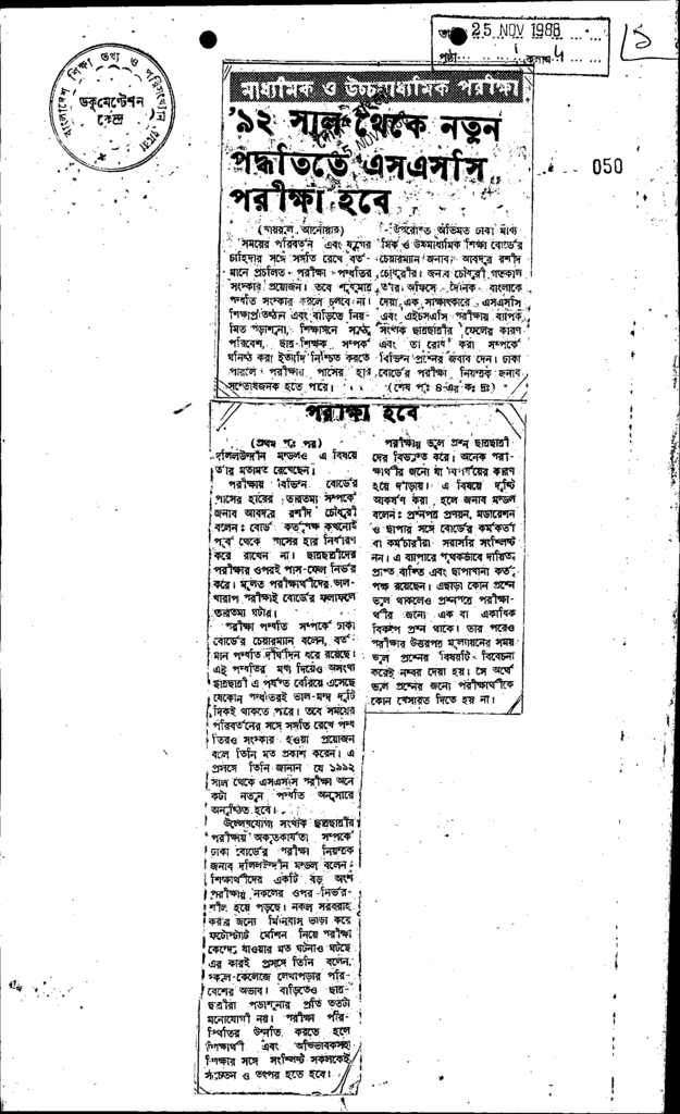 ’92 সাল থেকে নতুন পদ্ধতিতে এসএসসি পরীক্ষা হবে Published on Newspaper দৈনিক বাংলা Category Public Examination Public Examination Others Download